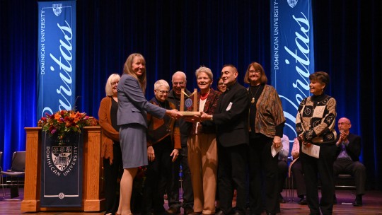 Dominican University Home Driven to make a difference?We've got something in common. Discover your true calling, with innovative, affordable education for people of all backgrounds and beliefs. Undergraduate Programs Graduate and PhD Programs Online Programs Workforce Development Request Information Ready to learn more? Let's connect! Please give us a few details and an admission specialist will be in touch. Visit Campus Students tell us their first trip here confirmed their decision to apply. Schedule a visit to see for yourself. Apply Now As you set out to make your mark on the world, we’re honored that you’re considering Dominican. Ready to discover Dominican? Do you have my program? Can I afford Dominican? Will I fit in here? Grounded in Catholic tradition with a social justice focus. Learn about our mission #1 Best Value University in the Midwest. Explore our rankings Chicago’s Premier Catholic Hispanic-Serving Institution. Read about our community The Dominican Difference #1 Best Value in Illinois—U.S. News & World Report #1 for Social Mobilityin Illinois Top 25 Regional Universityin the Midwest 16 Average class size 12:1 Student-to-faculty ratio 23 Nations representedin student body 100% Freshmen who receivefinancial aid 100% of students complete high-impact experiences outside class 25+ Graduate degree programs 20 Study abroad programs 35+ Student clubs and organizations 250,000+ Volumes in library 10 Miles from downtown Chicago 3.28 Average GPAof student-athletes 240+ Student athletes 13 Men’s and women’svarsity teams Admission Events Explore the ways you can experience Dominican, on campus and virtually. Find an event News Events Dominican University Presents Bradford-O’Neill Medallion for Social Justice to The Migrant Ministry of Oak Park The honor recognizes work that reflects the university's mission of creating a more just and humane world. Dominican University Announces 2026 Benefit Gala and 125th Anniversary Kickoff All proceeds from the event directly support student scholarships. Art Student's Prints in Lewis Hall Depict Biblical Themes Emily Reynoso Muñoz's minor in theology and an appreciation for iconography inspired her woodblock prints. The Nutcracker Lund Auditorium December 6 | 2pm The Nutcracker Lund Auditorium December 6 | 7pm The Nutcracker Lund Auditorium December 7 | 12pm Dominican Magazine Dominican Magazine is the magazine of Dominican University. It is published semiannually and distributed to alumnae/i, faculty, staff and friends of the university. Read the latest issue Ready for your next steps? Explore Programs Schedule a Visit Request Info Apply to Dominican