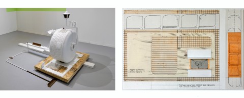 Sculptural installation left: Steve Reber; Drawing right: Deb Sokolow