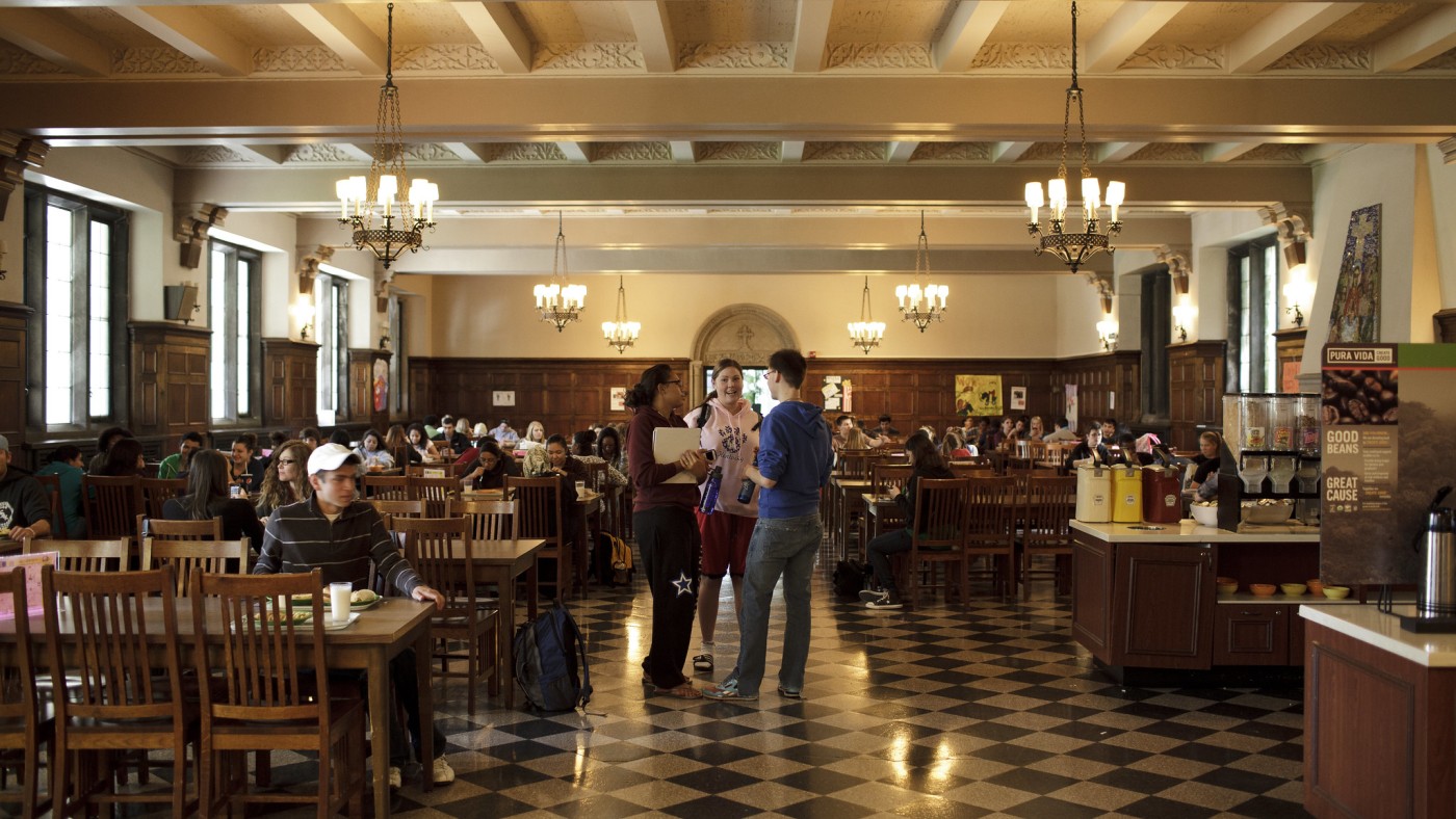 Dinner composting in our main dining hall, with student help, diverted more than 2,000 pounds of food from the landfill during one semester.