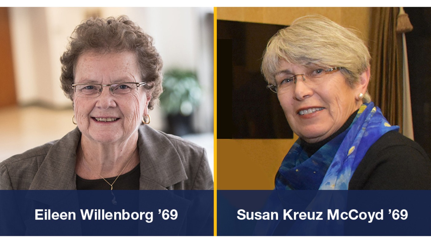 The Dominican University Alumnae/i Association is proud to announce the 2019 recipients of the Caritas Veritas Award (Eileen Willenborg ’69) and the O'Keefe Outstanding Volunteer Achievement Award (Susan Kreuz McCoyd ’69).