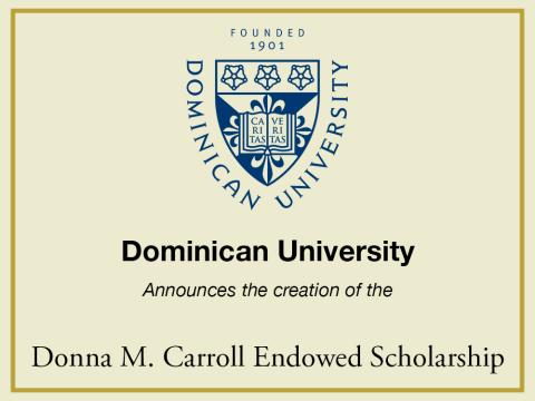 To recognize her transformative leadership over the course of her 27-year presidency, Dominican University has established the Donna M. Carroll Endowed Scholars Program with the creation of a $1M scholarship fund.