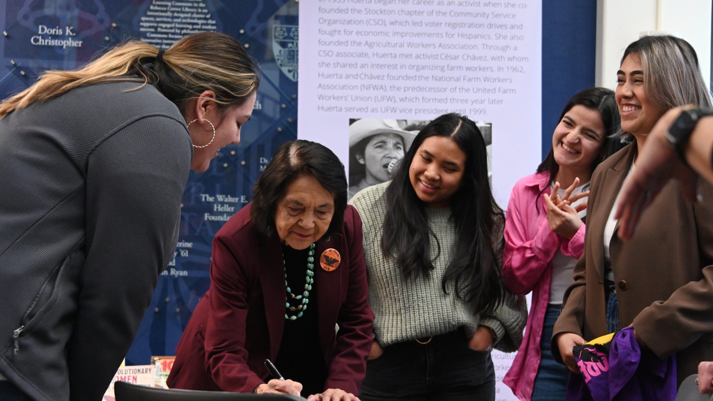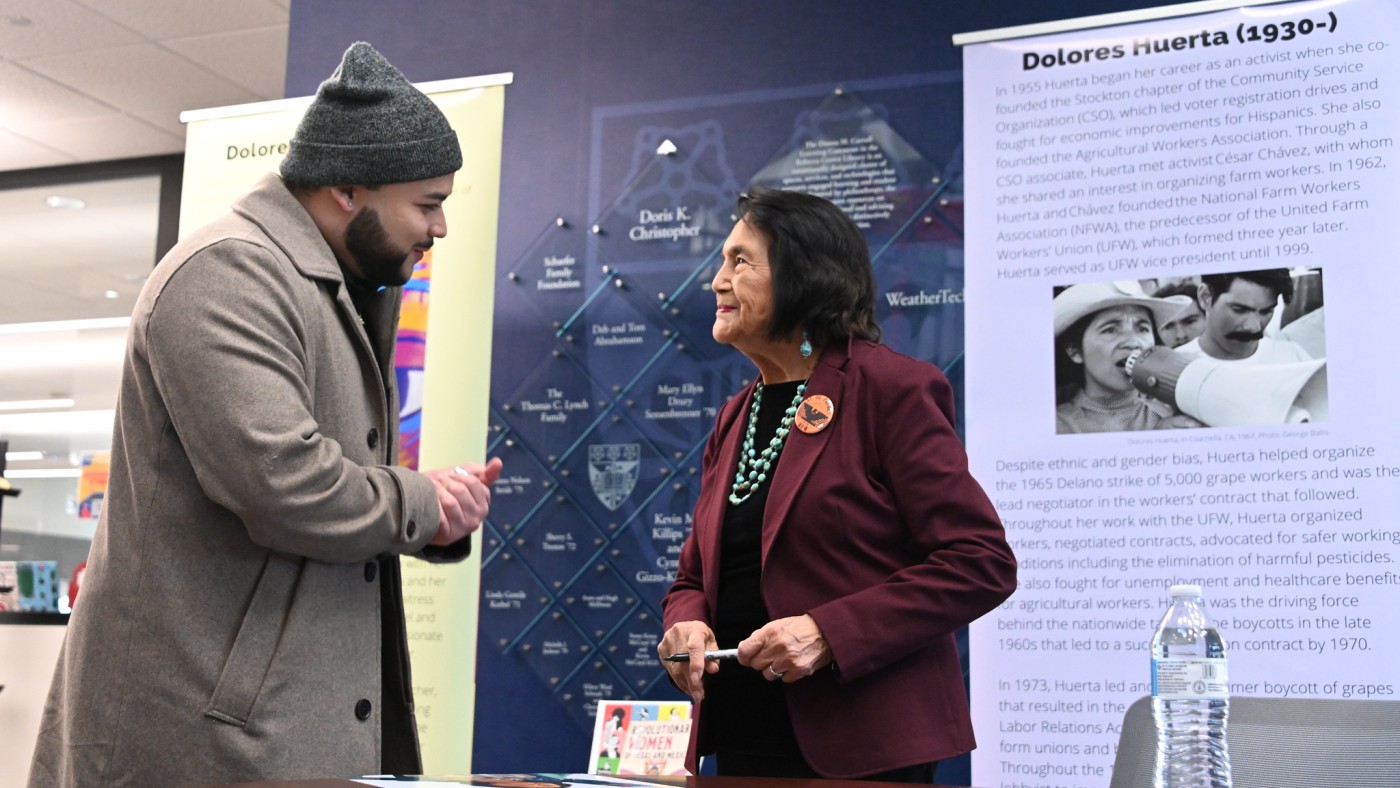 It was a return visit for Huerta, a Presidential Medal of Freedom recipient and founder of the Dolores Huerta Foundation, which helps communities build volunteer organizations pursuing social justice.