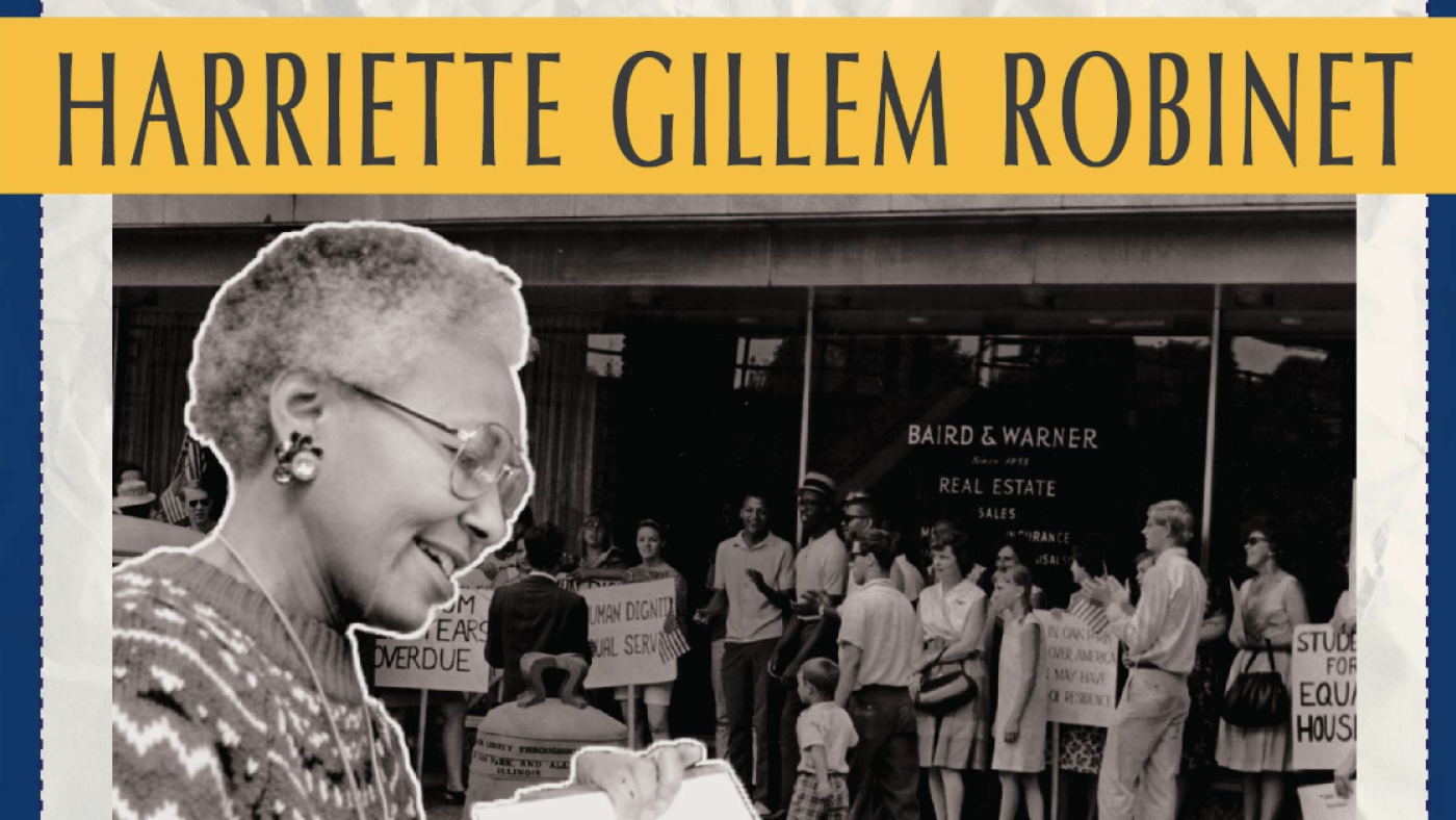 The granddaughter of enslaved people, Harriette Gillem Robinet, with her husband, McLouis Robinet, has a history of civic involvement and activism in the Oak Park area. As one of the first Black families to purchase a home in Oak Park, the couple participated in fair housing marches in the 1960s and lobbied the village board to pass a fair housing ordinance in 1968, one of the first in the country.
