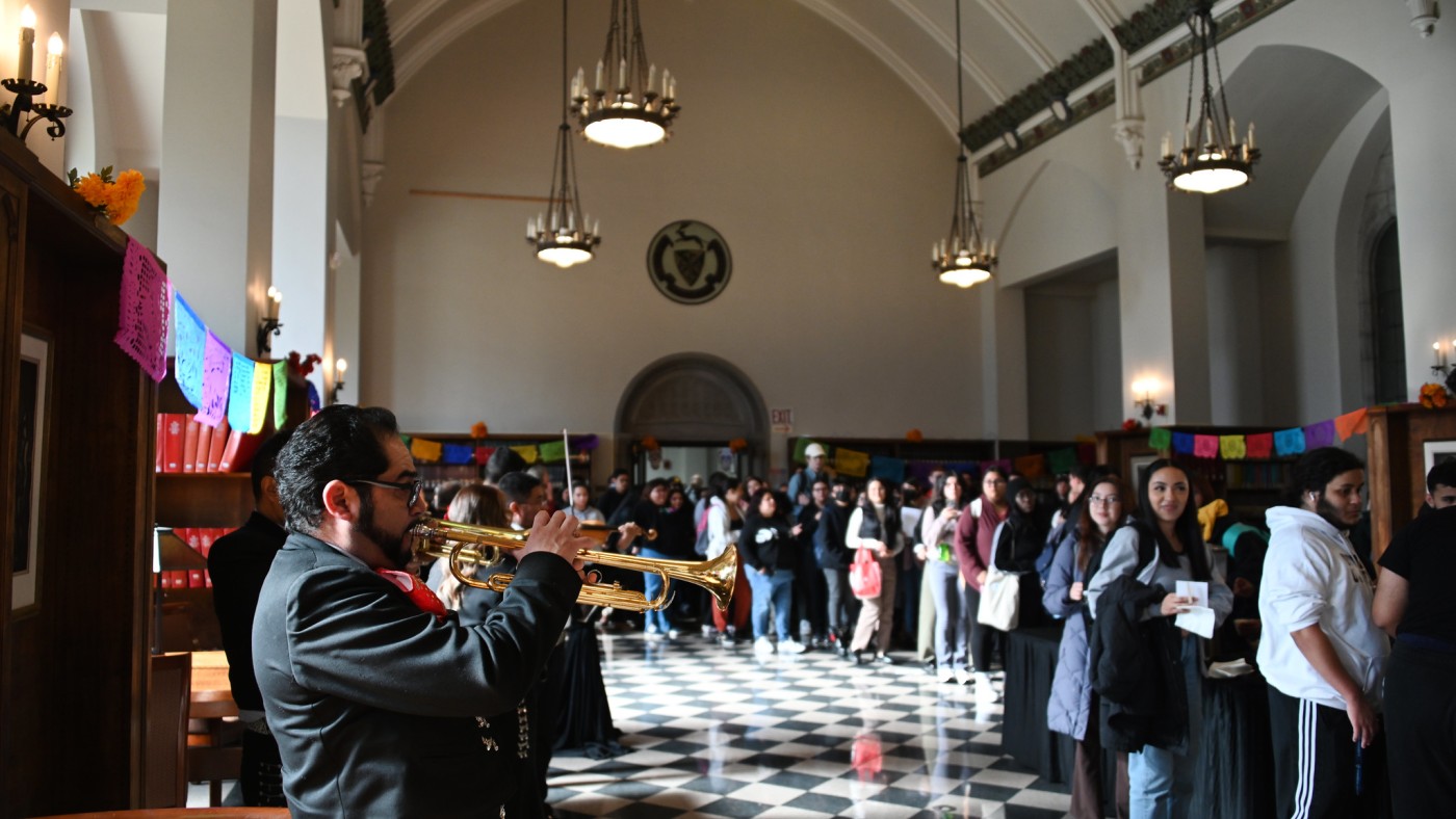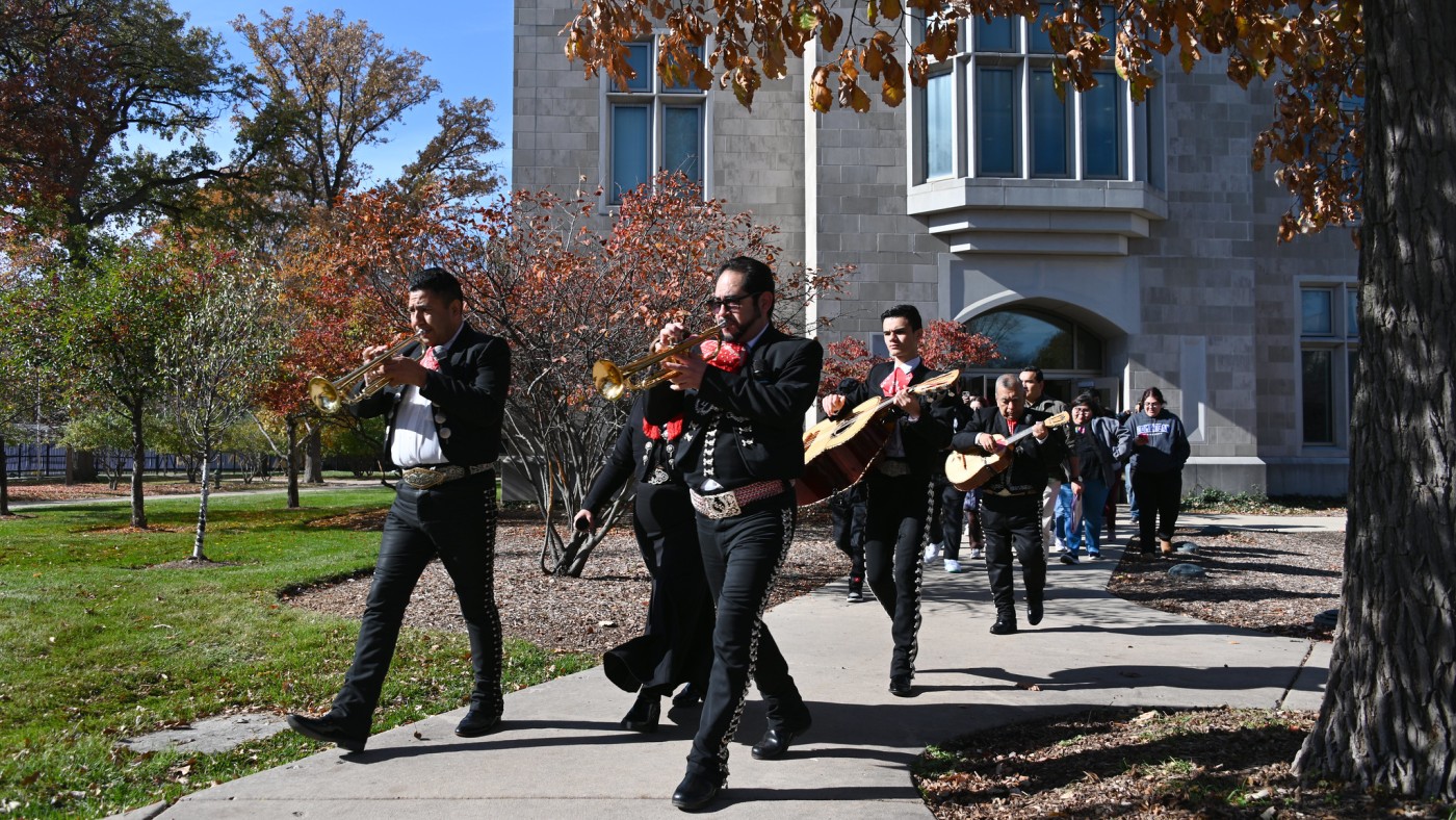 Accompanied by music from a seven-piece mariachi band, more than 100 students, faculty and staff came together in procession to mark Día de los Muertos at Dominican University.