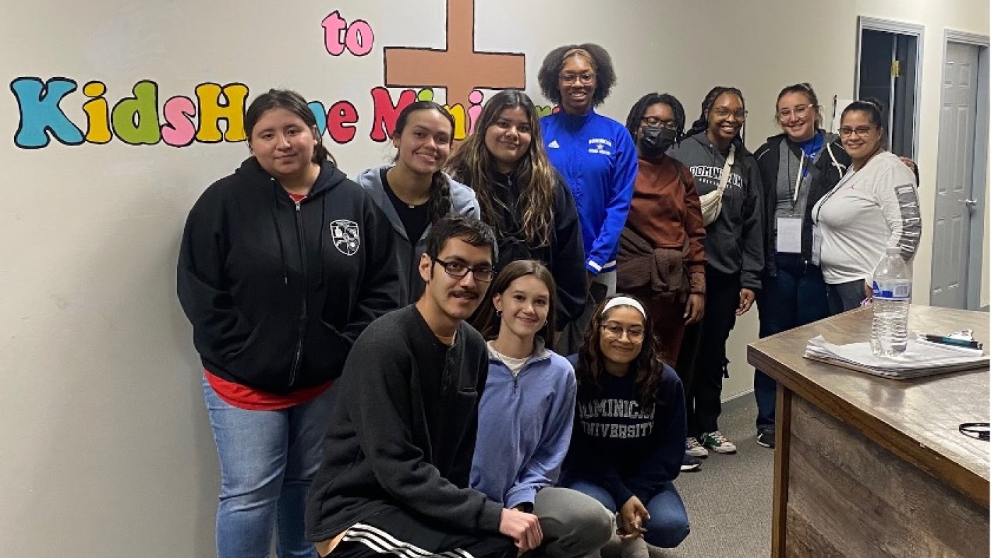 A food pantry helping to feed newly arrived migrants and local residents in need got some help recently from Dominican University Honors students.
