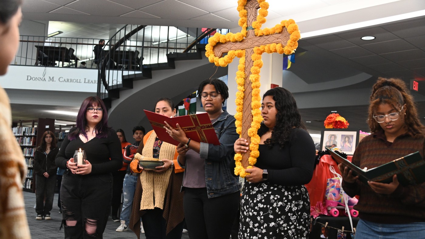 Dominican University marked Día de los Muertos (Day of the Dead) with reflection and celebration as blessings of three student-created ofrendas took place on campus.