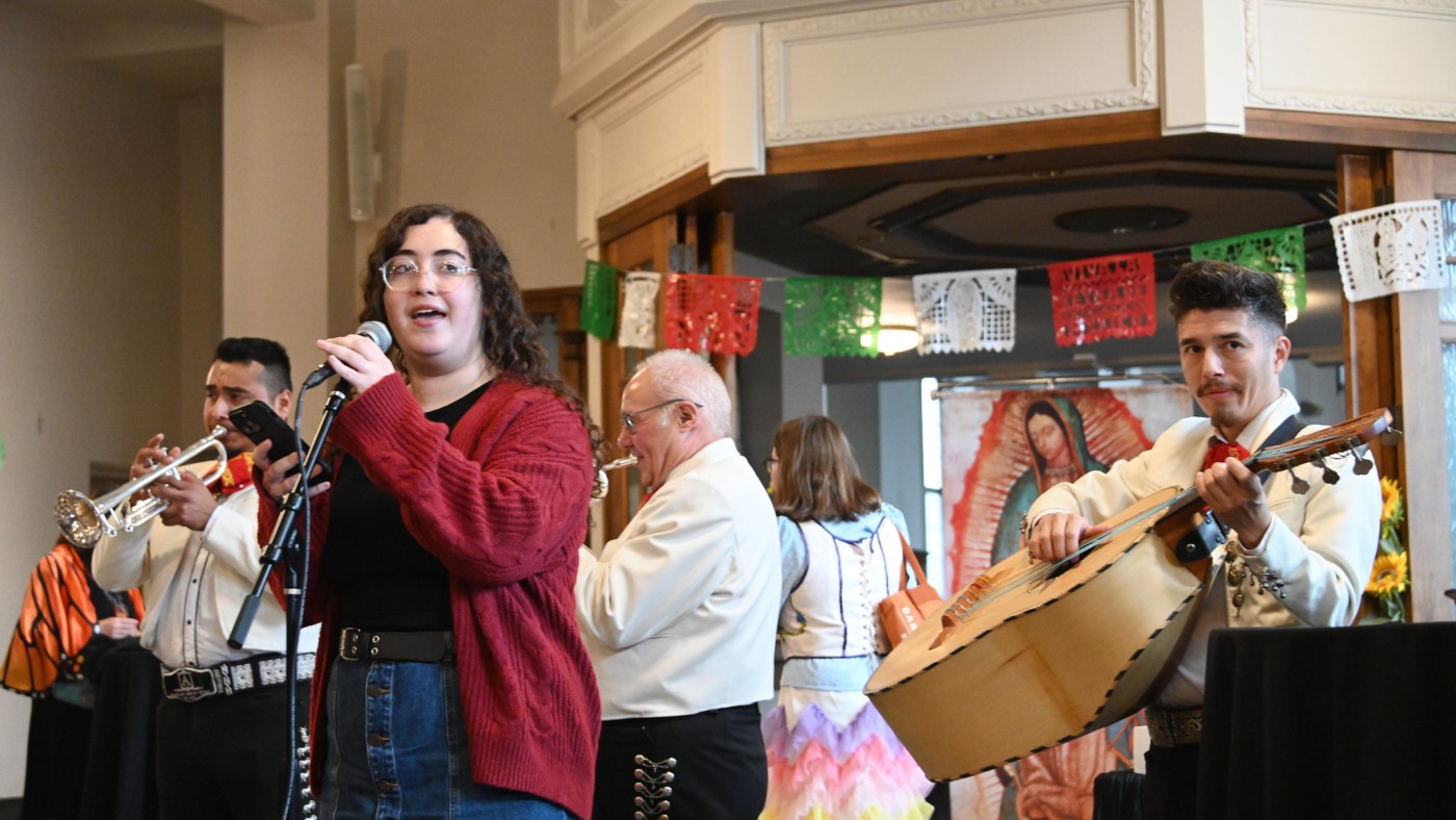 On Oct. 31, a mariachi band and University Ministry led a procession of roughly 100 students, staff and faculty from Parmer Hall Atrium to Rebecca Crown Library to the second floor of Lewis Hall. At each location, the ofrenda (altar) was blessed with water, reflections were recited, and prayers were said. A gathering with food and music followed.