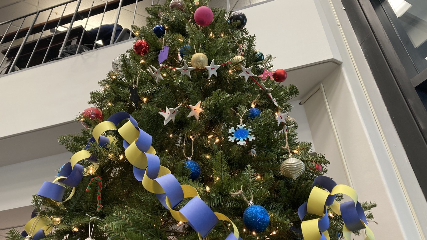 There’s a new Christmas tree standing tall in Rebecca Crown Library.